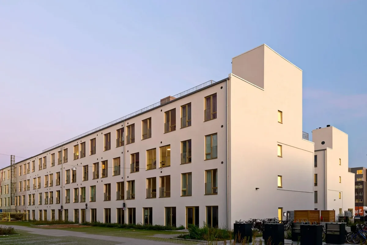 Bright and well-planned student apartments with private kitchen and bathroom, roof terraces and social areas, in the middle of Copenhagen near the subway and services.