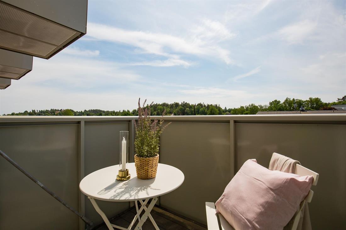 - 3D visning på bostad med balkong (bostaden förekommer även med fransk balkong och fönster):