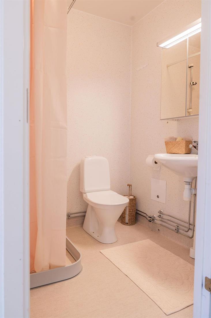 - Kök är utrustade med kombinerad kyl/frys, spis med ugn och diskbänk.